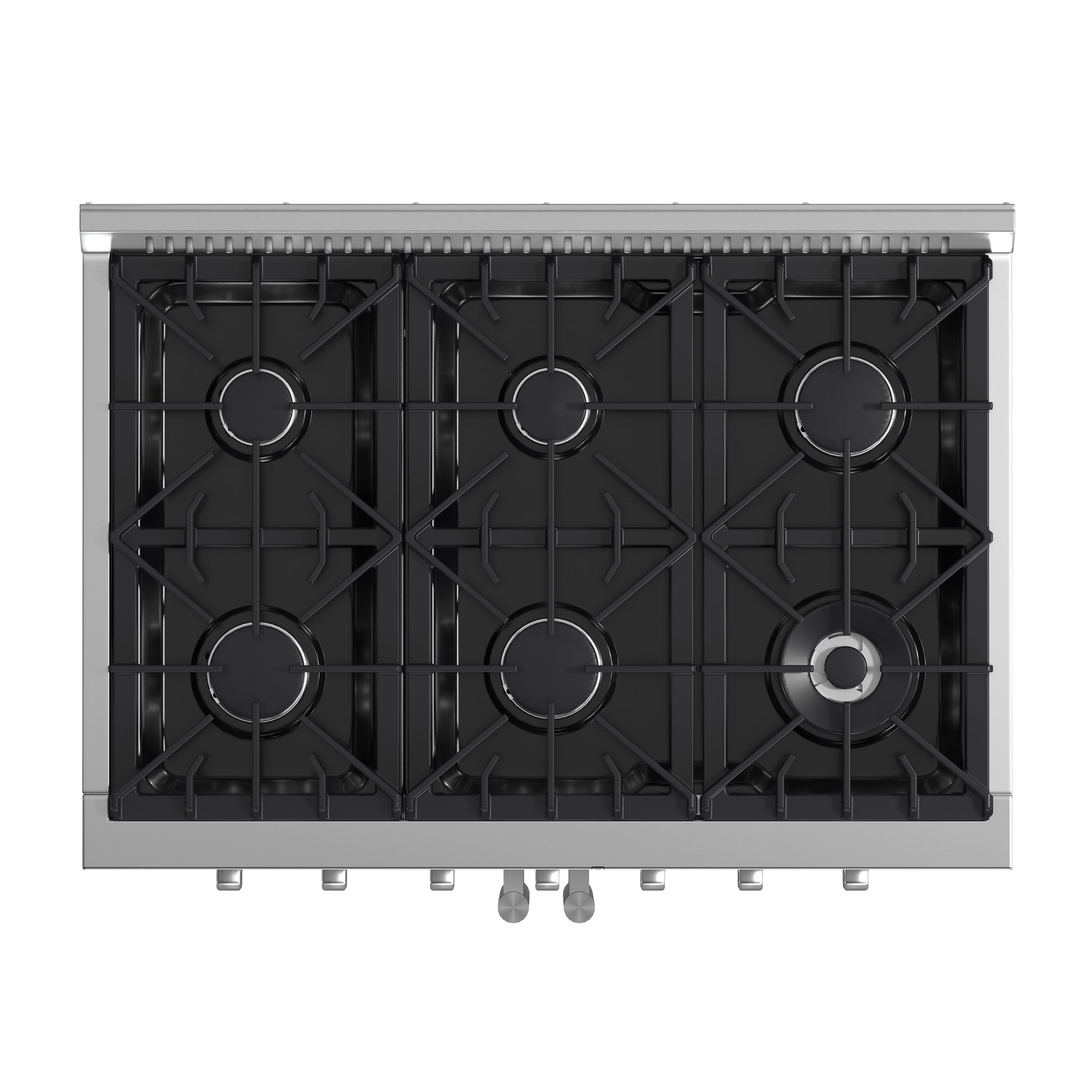 The Forno Galiano 36" French Door Gas Range brings professional styling and performance into your home kitchen at an affordable price. Enjoy effortless access to your oven with French doors that offer an extra 12 inches of space. The cooking surface has six sealed burners with a total output of 83,000 BTU - one of which is a 20,000 BTU dual-ring burner that can reach a precise simmer of 1,000 BTU. Cast iron grates ensure stability over the cooktop, making spills easy to clean. With a powerful 30,000 BTU output, the 5.36 cu. ft. oven features a sleek black enamel interior and a convection fan for quick, precise cooking. The 3-layer glass oven door lets you effortlessly monitor your meals. Zinc-coated metal knobs with bezel rings are built to stay beautiful for years, adding a touch of lasting elegance to your kitchen. Two electroplated oven racks and an LP conversion kit are included.