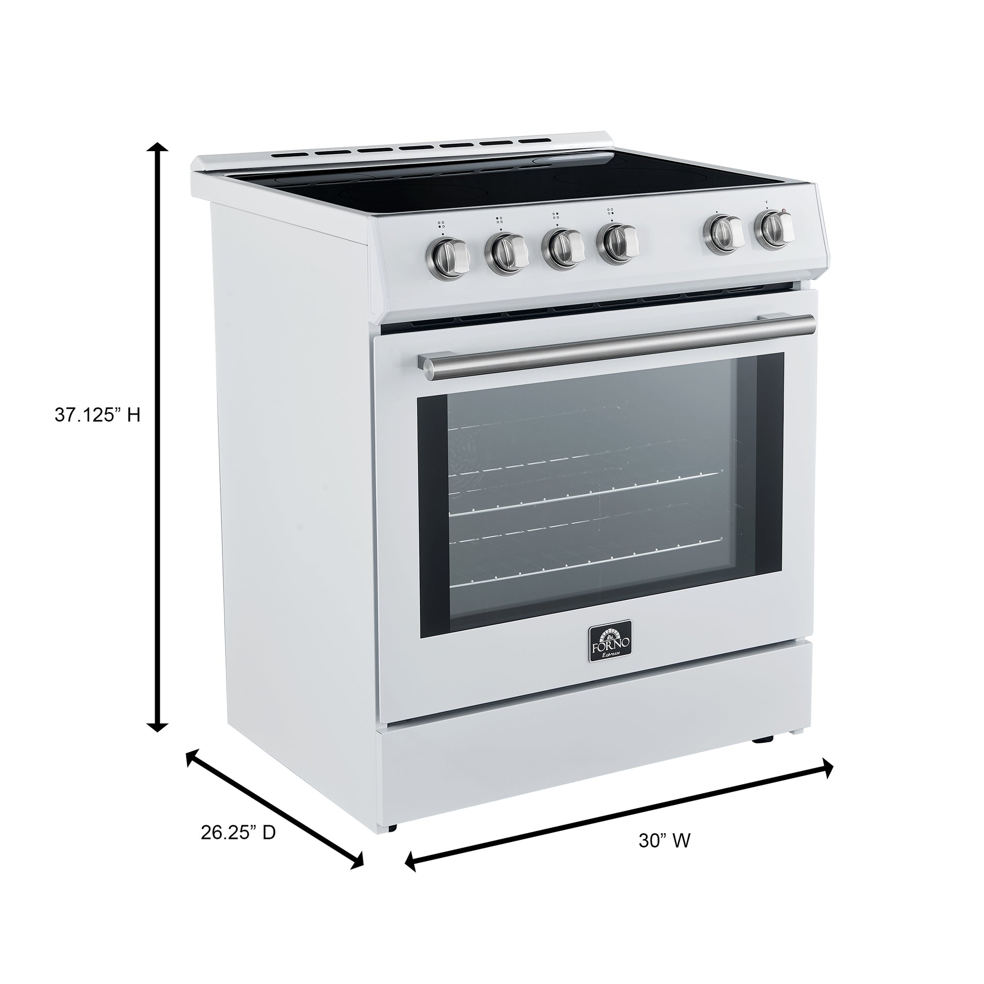Forno Leonardo Espresso 30-Inch Slide-In White Induction Range, Convection Oven, 5 Cooking Zones, Touch Control Panel