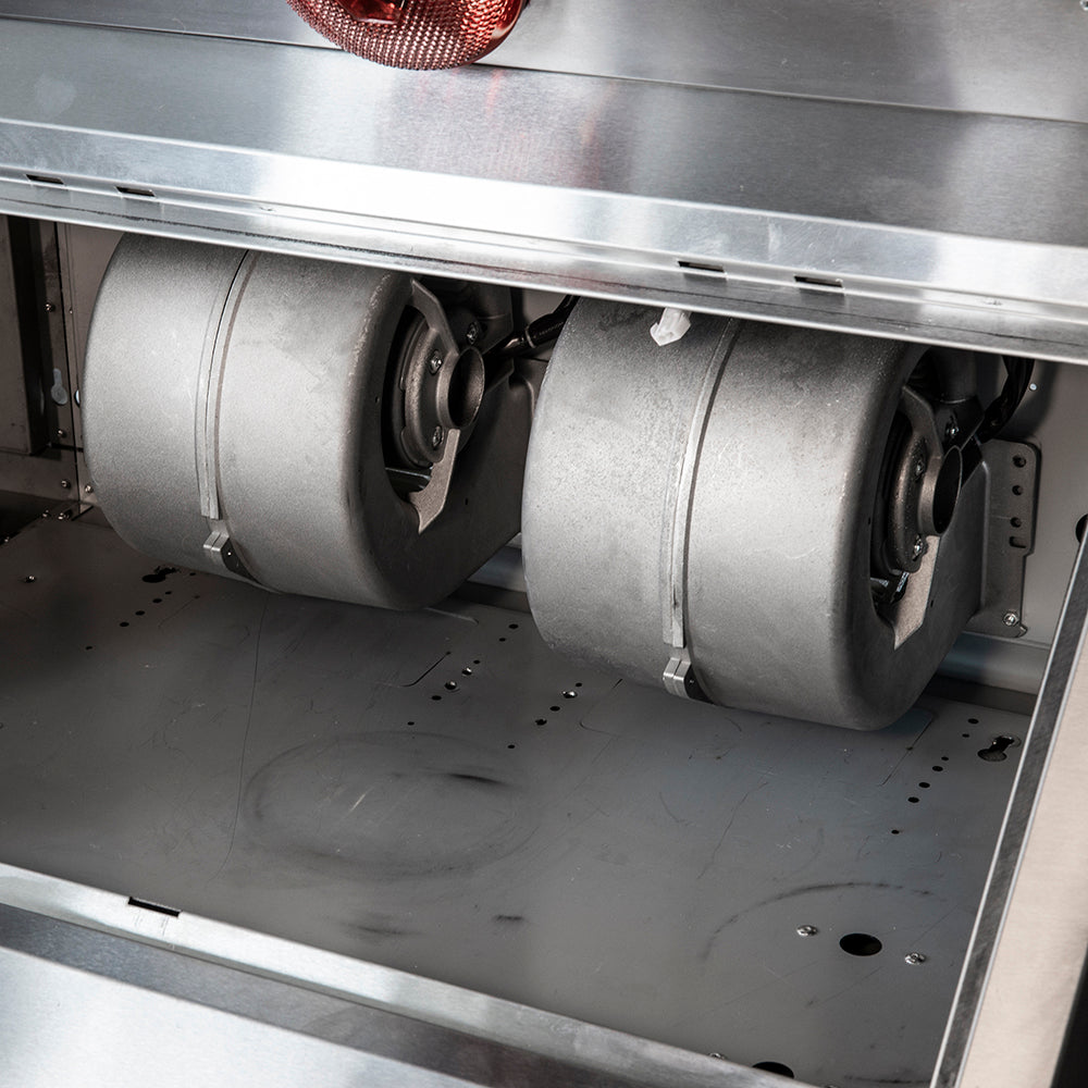 The Forno Savona 48" Wall Mount Range Hood delivers powerful ventilation with 1200 CFM airflow to eliminate smoke, grease, and odors efficiently. Constructed from premium stainless steel, it ensures long-lasting durability and a professional appearance. Hybrid filters maximize filtration performance and are removable and dishwasher-safe for easy maintenance. Multiple fan speed settings allow precise airflow control based on your cooking needs. The integrated upper warming shelf, heated by three warming lights, keeps dishes ready to serve. A sleek stainless steel backsplash adds both elegance and wall protection, while dual utensil hangers offer convenient storage or a stylish way to display cookware.